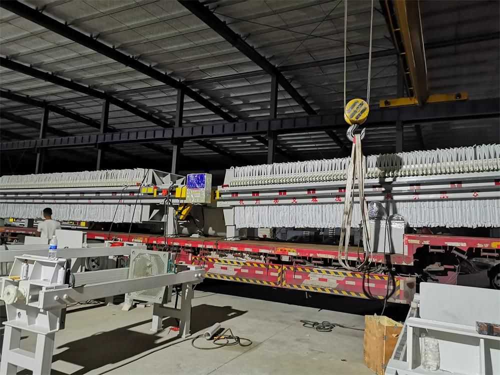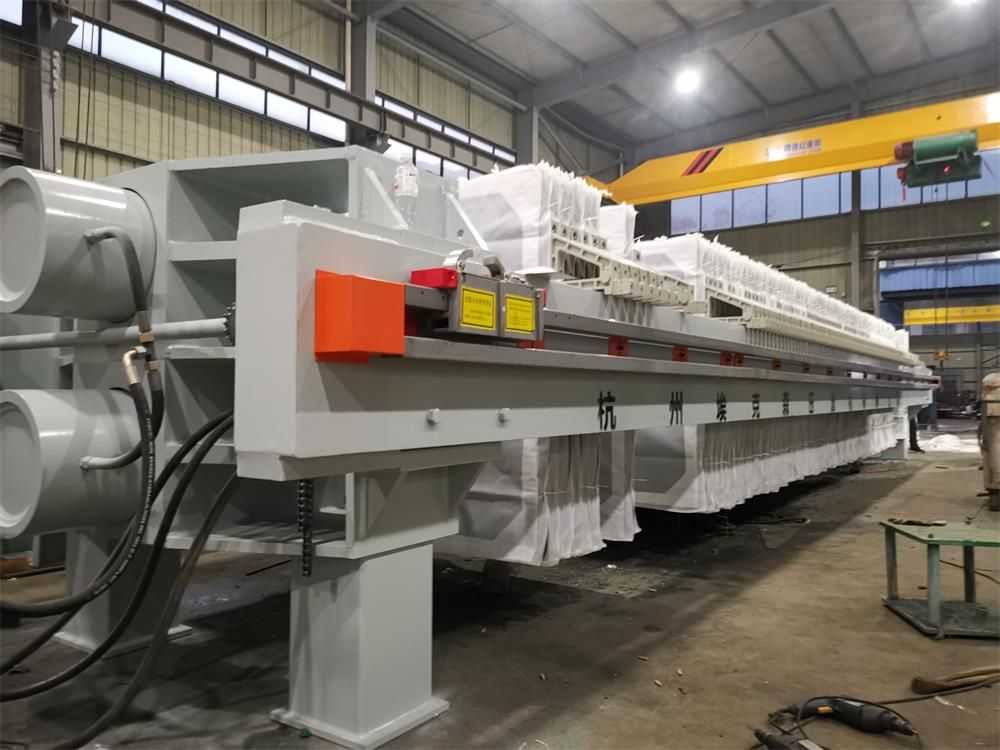 隔膜壓濾機和常規(guī)箱式壓濾機的主要區(qū)別在于,在濾板的兩側都增加了兩個彈性膜(復合橡膠膜是一個整體式膜。在操作期間,當進料完成時,將高壓流體介質(zhì)注入膜中,并使整個膜膨脹以過濾濾餅,以進一步使濾餅脫水,這是壓力過濾。在隔膜壓濾機運行期間,液壓系統(tǒng)使用液壓油作為壓力載體來傳遞內(nèi)部壓力。